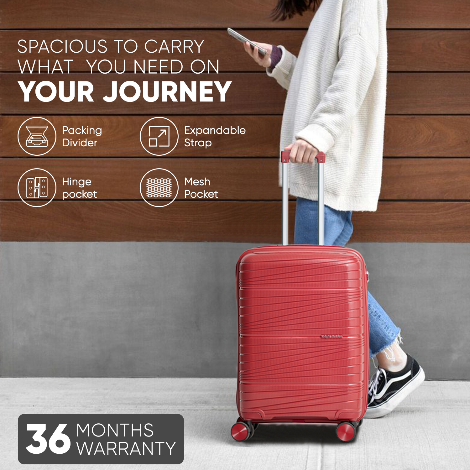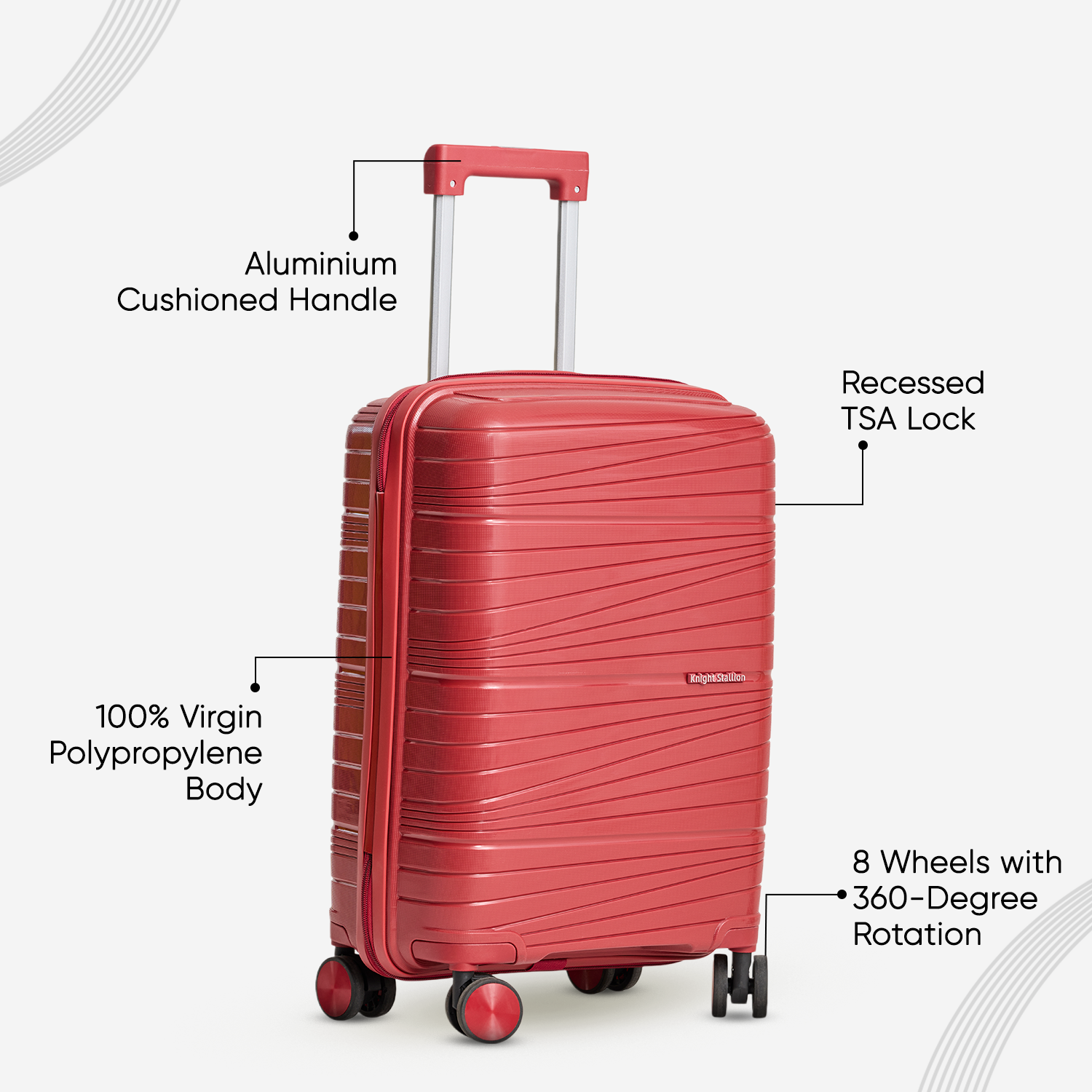 The rich, deep maroon color sets you apart from the sea of black suitcases, ensuring you'll spot your bag on the carousel every time. With smooth-gliding spinner wheels and a comfortable telescoping handle, navigating airports and city streets has never been easier. From a quick weekend getaway to an extended vacation, the Maroon Mirage set has a size for every adventure.
